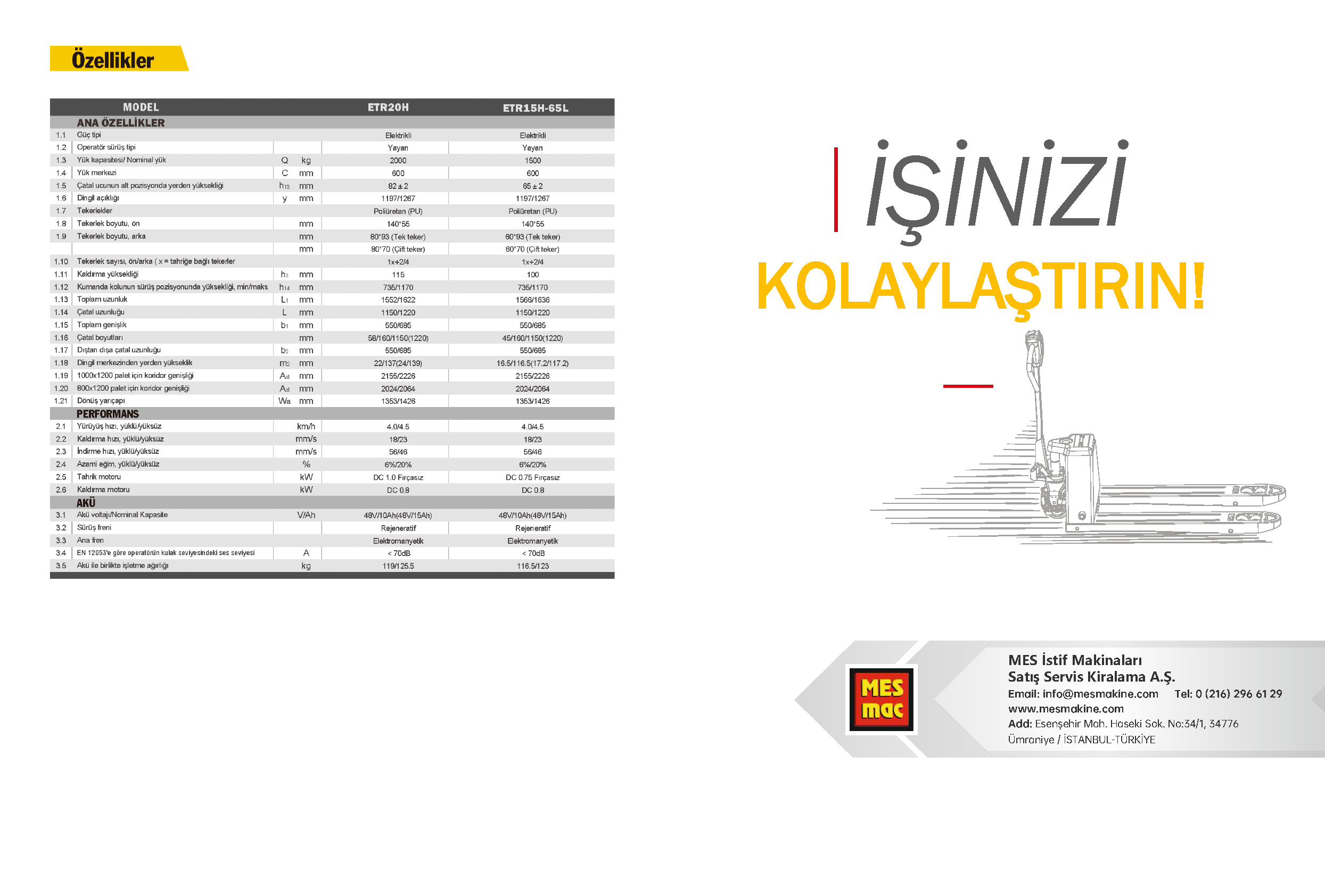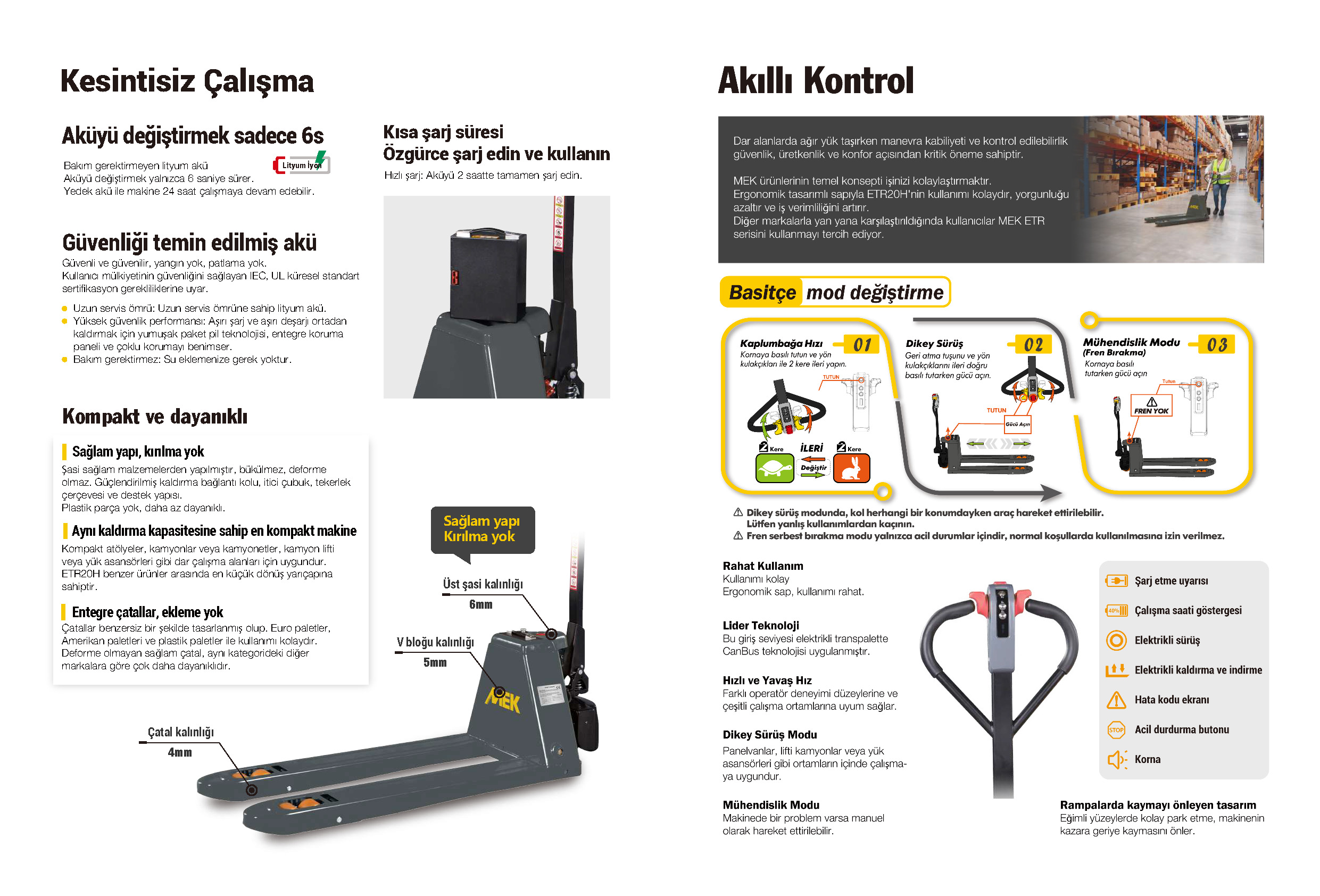 MEK ETR Serisi 2T Lityum Akülü Transpalet