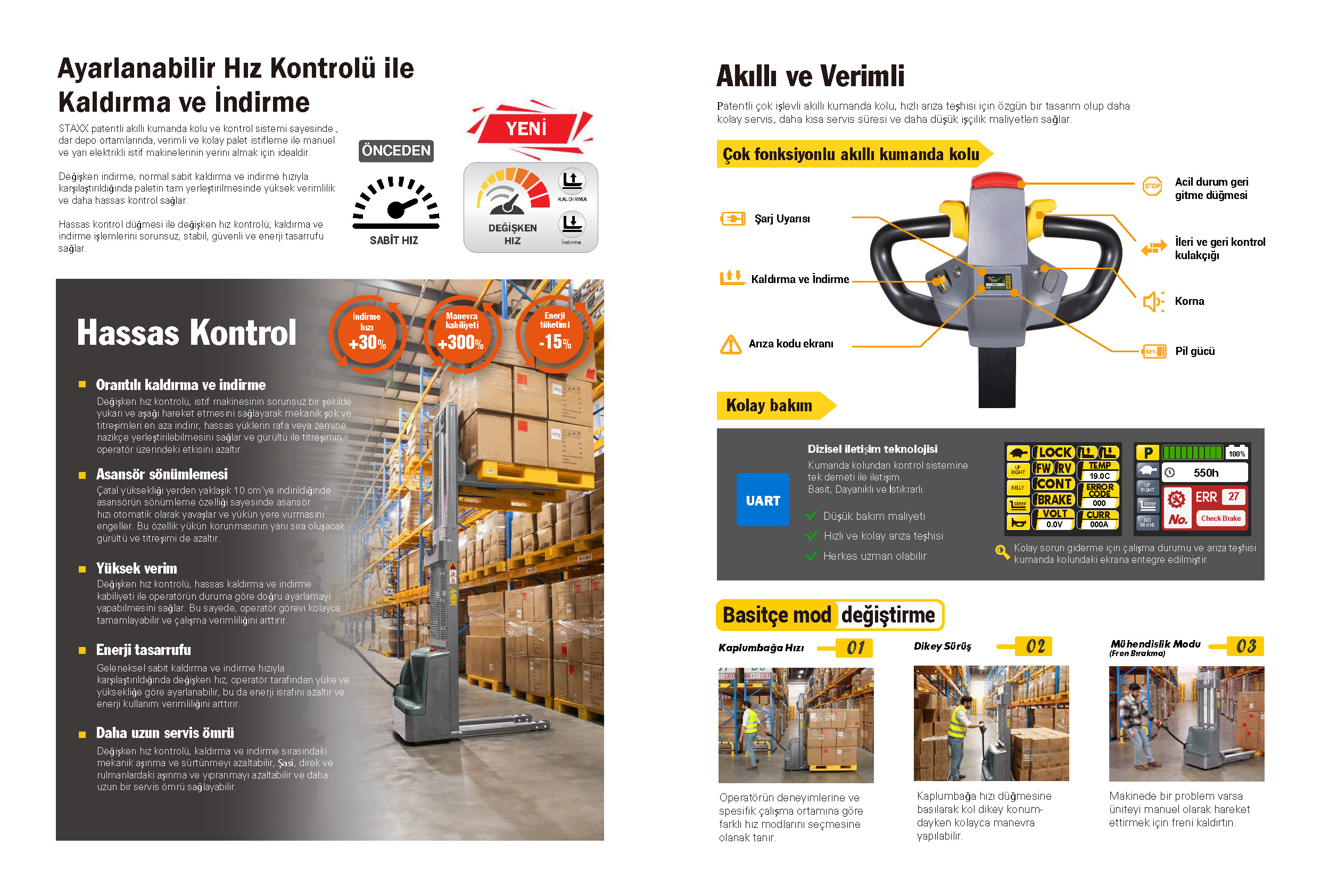 STANDART OLARAK AYARLANABİLİR KALDIRMA HIZI