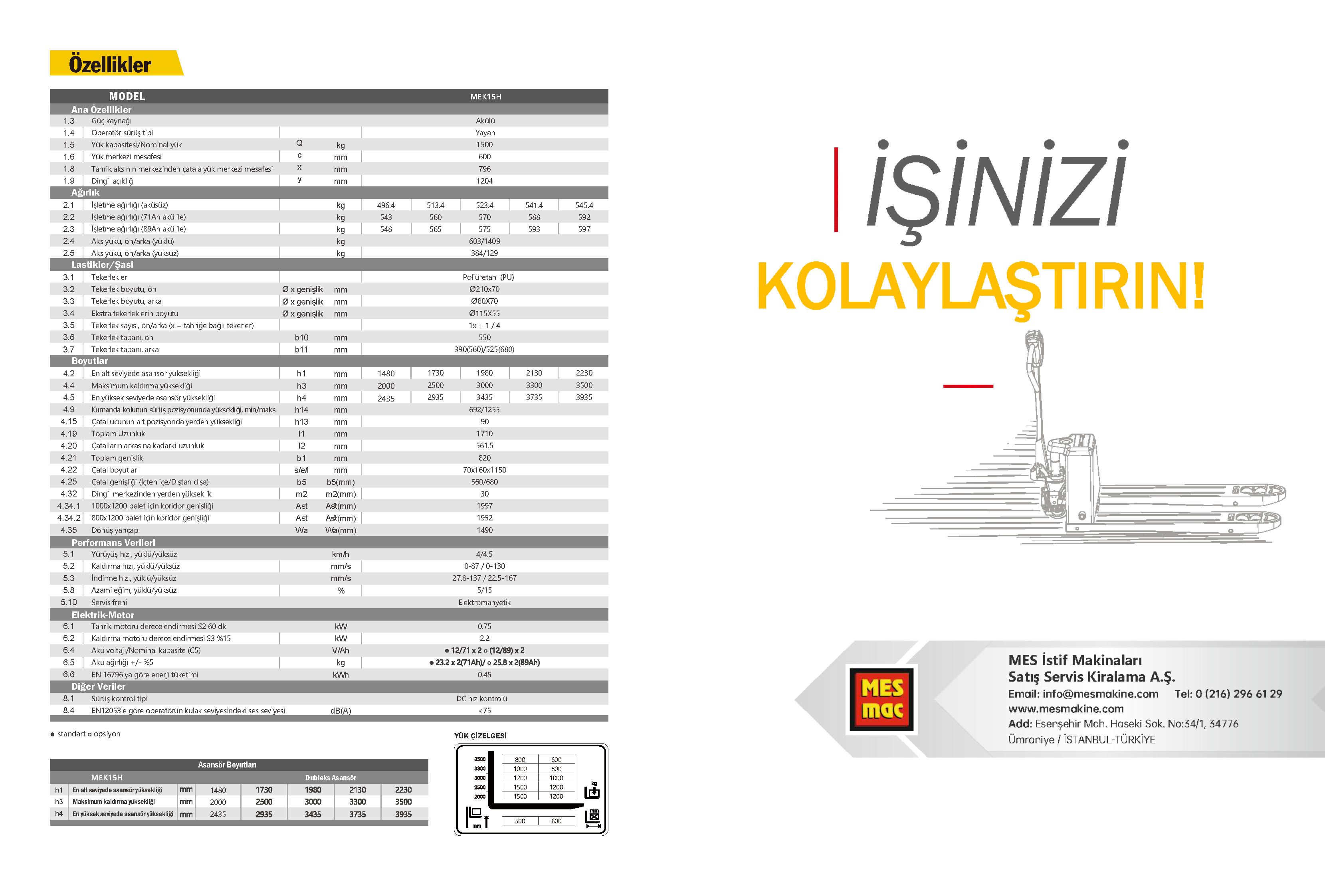 ASANSÖR SEÇENEKLERİ: 2.5, 3, 3.3 METRE